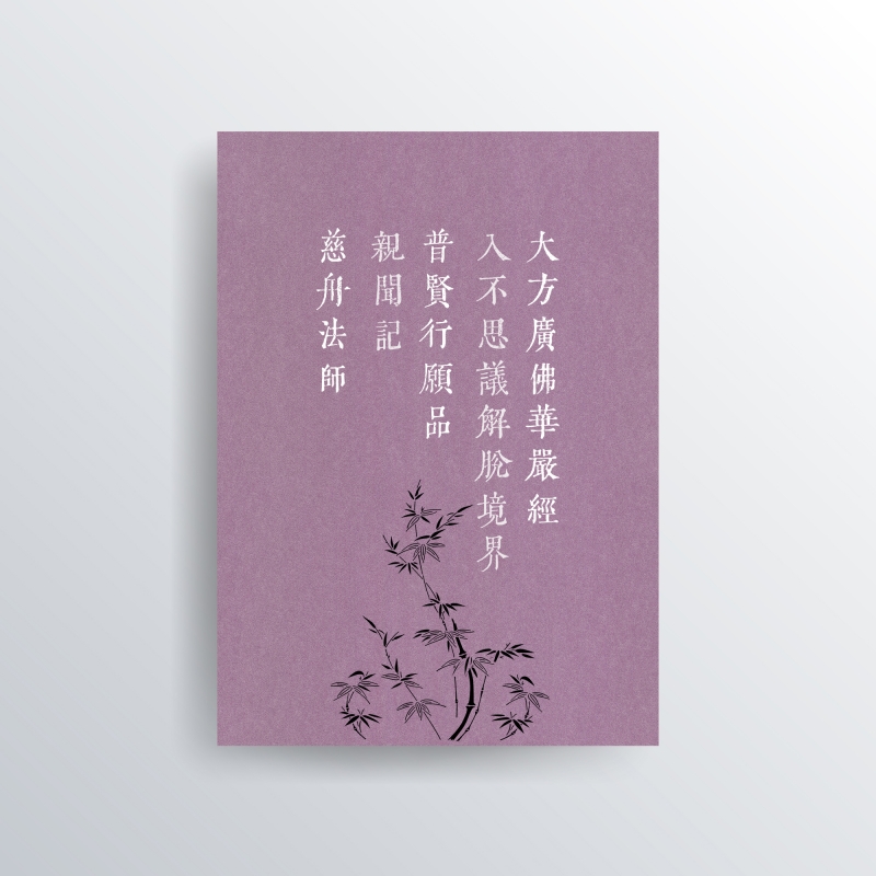 慈舟法師 講・《普賢行願品》品=類、普賢行願、有通有別、通則三世諸佛同有之因行、別則華嚴會上釋迦如來之長子普賢菩薩之十大行願也。此品全部華嚴關鍵、修行樞機、文約義豐、可軌可持。不能受持全部華嚴者、當以受持此品為日課。